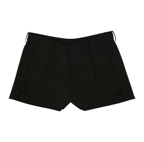 - WOOL SUITING BLEND - BABY SHORTS - SIDE INSEAM POCKETS - BACK SINGLE WELT POCKETS - FRONT PLEAT DETAILING - SIDE SEAM SLIT