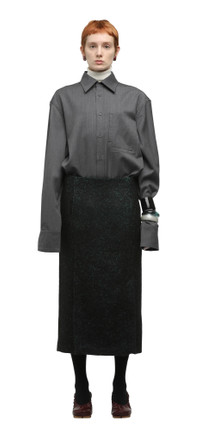 - 12% MOHAIR 25% ALPACA 16% WOOL 4% VICOSE 6% POLEYSTER 37% COTTON - TAILORED SKIRT - FRONT INSEAM POCKETS - FULLY LINED - FORM FITTED - MIDI LENGTH - DOUBLE FRONT VENTS - YKK INVISIBLE ZIPPER