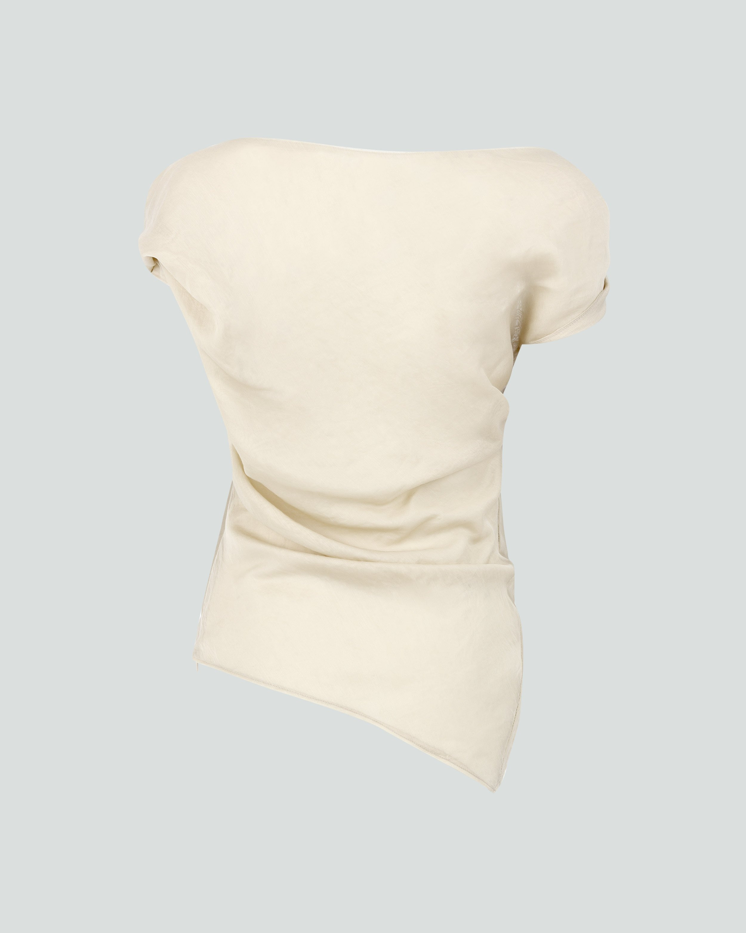 - 85% TENCEL 15% NYLON - SIDE SEAM YKK INVISIBLE ZIPPER - GATHERED DETAILS - TWIST SHOULDER - DOUBLE LAYERED