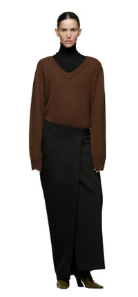 - 100% WOOL SUITING - SIDE SEAM YKK INVISIBLE ZIPPER - MIDI LENGTH - FRONT WRAP DETAIL - ASYMMETRIC WAIST LINE - FULLY LINED