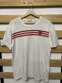 ITEM : Vintage CDG Play AD2004 Tshirt TAG LABEL : Play Comme des Garcons SIZE ON TAG : L / fit M CONDITION : Good used item MEASUREMENT APPROXIMATELY (laid on flat floor):- Armpit to armpit : 20” Shoulder to hem : 27” ** Please refer to pictures (inch) and compare with your garment before purchase PAYMENT : PAYPAL ONLY SHIPPING : DHL/FedEx EXPRESS (*3-6 days ETA delivery depend on location & customs clearance) !!!!!⚠️IMPORTANT⚠️!!!! ** PLEASE LEAVE THE CONTACT NUMBER ** DOUBLE CHECK THE SHIPPING ADDRESS (P.O Box are not recommended ) ** REVIEW ALL PICTURES AND ASK ANY QUESTION IF NEEDED ** PRICE SUBJECT TO NEGOTIATE MAKE YOUR BEST BINDING OFFER ** NO REFUND NO RETURN ** Please bear in mind that this item had been used previously. Sign of wear and ages might be available on it, so dont expect it to be like NEW condition. All item will be described as is. ** Due to lighting and angle view during photo taken, the color may differ with actual. So kindly enlarge all photos and ask any question before purchase Thank for dropping by and do follow me for latest items :)