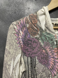 ‼️Don’t wait..make your offer ‼️ ITEM : Vocal Tattoo Design Inspired Ed Hardy Soft Zipper Hoodie TAG LABEL : Vocal SIZE ON TAG : M MATERIAL : Polyster,Rayon & Spandex CONDITION : Very good used item MEASUREMENT APPROXIMATELY (laid on flat floor):- Armpit to armpit : 16~20” (Stretchable) Shoulder to hem : 26.5” ** Please refer to pictures (inch) and compare with your garment before purchase PAYMENT : PAYPAL ONLY SHIPPING : DHL/FedEx EXPRESS **estimated 3-6 days ETA delivery depend on location & customs clearance **we have a right to cancel the purchases if buyer’s location is in remote area as it’s will consume a high cost for shipping unless buyers agree to pay an additional fees (rarely happen) !!!!!⚠️IMPORTANT⚠️!!!! ** PLEASE LEAVE THE CONTACT NUMBER ** DOUBLE CHECK THE SHIPPING ADDRESS (P.O Box are not recommended ) ** REVIEW ALL PICTURES AND ASK ANY QUESTION IF NEEDED ** PRICE SUBJECT TO NEGOTIATE MAKE YOUR BEST BINDING OFFER ** NO REFUND NO RETURN ** Please bear in mind that this item had been used previously. Sign of wear and ages might be available on it, so dont expect it to be like NEW condition. All item will be described as is. ** Due to lighting and angle view during photo taken, the color may differ with actual. So kindly enlarge all photos and ask any question before purchase ⚠️If you have multiple item on your mind with some budget, don’t hesitate to let me know. Thank for dropping by and do follow me for latest items :)