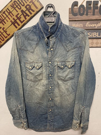 ITEM : Blue Blue Japan Stone Button Up Chambray Shirt TAG LABEL : Blue Blue SIZE ON TAG : M/2 CONDITION : Good used item - please refer to pictures for overall conditions MEASUREMENT APPROXIMATELY (laid on flat floor):- Armpit to armpit : 18” inch Shoulder to hem : 28” inch **Please compare the measurement with your garment before purchase this item PAYMENT : PAYPAL ONLY SHIPPING : DHL/FedEx EXPRESS SHIPPING (*estimated 3-6 days delivery time depend on location & custom clearance) IMPORTANT BEFORE PURCHASE!! ** PLEASE LEAVE THE CONTACT NUMBER ** DOUBLE CHECK THE SHIPPING ADDRESS (P.O Box are not recomended) ** REVIEW ALL PICTURES AND ASK ANY QUESTION IF NEEDED ** PRICE SUBJECT TO NEGOTIATE MAKE YOUR BEST BINDING OFFER ** NO REFUND NO RETURN ** Please bear in mind that this item had been used previously. Sign of wear and ages might be available on it, so dont expect it to be like NEW condition. All item will be described as is. Thank for dropping by and do follow me for latest items :)