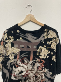ITEM : Nine Tail Fox Embroidery Backside Design Japanese Tradition T shirt SIZE ON TAG : XL CONDITION : 9/10 Very nice japanese tshirt -the embroidered design was very nice and beautiful MEASUREMENT (laid on flat floor):- Armpit to armpit : 22” inches Shoulder to hem : 28.5” inches *Please compare the measurement with your garment before purchase this item PAYMENT : PAYPAL ONLY SHIPPING : DHL EXPRESS SHIPPING (estimated 1-6 days delivery time depend on location & custom clearance) PLEASE LEAVE THE CONTACT NUMBER as the shipping company always need the phone number for delivery process NO REFUND NO RETURN Please bear in mind that this item had been used previously. Sign of wear and ages might be available on it. All item will be described as is Please check all pictures and ask question for any additional info before purchase. Some items are USED, VINTAGE & PRE LOVED items, so dont expect it to be like NEW condition. Dont hesitate to leave a message for any info Thank for dropping by