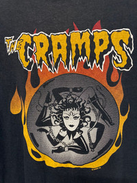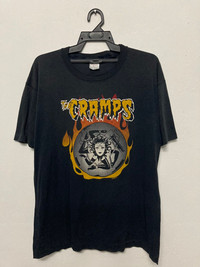 ITEM :(Personal best collection) Vintage 1988 The Cramps Halloween Party Rare Tour Shirt TAG LABEL : Hugger MADE : USA πΊπΈ SIZE ON TAG : XL CONDITION : Very good vintage item - Has 2 small holes refer to pictures. This shirt was well care taken MEASUREMENT APPROXIMATELY (laid on flat floor):- Armpit to armpit : 22.5β inch Shoulder to hem : 30β inch *Please compare the measurement with your garment before purchase this item PAYMENT : PAYPAL ONLY SHIPPING : DHL EXPRESS SHIPPING (estimated 1-6 days delivery time depend on location & custom clearance) PLEASE LEAVE THE CONTACT NUMBER as the shipping company always need the phone number for delivery process NO REFUND NO RETURN Please bear in mind that this item had been used previously. Sign of wear and ages might be available on it. All item will be described as is Please check all pictures and ask question for any additional info before purchase. Some items are USED, VINTAGE & PRE LOVED items, so dont expect it to be like NEW condition. Dont hesitate to leave a message for any info Thank for dropping by