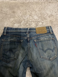 ITEM : Edwin Distressed Patchwork Denim Jeans MADE : JAPAN SIZE ON TAG : 28 CONDITION : 8/10 Good rare item MEASUREMENT APPROXIMATELY(lying on flat floor):- Waist : 28”~30” inch Hips : 18” inch / 46cm Rise : 9” inch / 23cm Tight : 9.5” inch / 24cm Out seam : 28” inch / 71cm In Seam : 37” inch / 94cm Leg Opening : 8” inch / 20cm *please compare the measurement with your garment before purchase this item PAYMENT : PAYPAL ONLY SHIPPING : DHL / Fedex Express Shipping with 6-7 days ETA PLEASE LEAVE THE CONTACT NUMBER as the shipping company always need the phone number for delivering NO REFUND NO RETURN Please bear in mind that this item had been used previously. Sign of wear and ages might be available on it (all defects,distress,altered ,rips, will be inform detail). Please check all pictures and ask question for any additional info before purchase. Some items are USED, VINTAGE & PRE LOVED items, so dont expect it to be like NEW condition. Dont hesitate to leave a message/email for any info Thank for dropping by