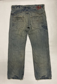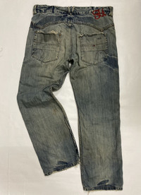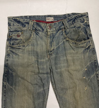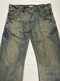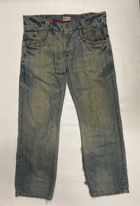 ITEM : Tommy Hilfiger Denim Distressed Jeans TAG LABEL : Tommy Hilfiger Denim SIZE ON TAG : 34x32 CONDITION : Distressed denim jeans - please refer to all pictures MEASUREMENT APPROXIMATELY(laid on flat floor):- Waist : 34” Hips : 22” Rise : 10.5” Thigh : 11” Out seam : 41” In Seam : 32” Knee : 10” Leg Opening : 9.5” *Please compare the measurement with your garment before purchase this item PAYMENT : PAYPAL ONLY SHIPPING : DHL/FedEx EXPRESS SHIPPING (*estimated 3-6 days delivery time depend on location & custom clearance) IMPORTANT BEFORE PURCHASE!! ** PLEASE LEAVE THE CONTACT NUMBER ** DOUBLE CHECK THE SHIPPING ADDRESS (P.O Box are not recommended) ** REVIEW ALL PICTURES AND ASK ANY QUESTION IF NEEDED ** PRICE SUBJECT TO NEGOTIATE MAKE YOUR BEST BINDING OFFER ** NO REFUND NO RETURN ** Please bear in mind that this item had been used previously. Sign of wear and ages might be available on it, so dont expect it to be like NEW condition. All item will be described as is. Thank for dropping by and do follow me for latest items :)