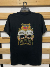 ITEM : Vintage 1993 Michael Jackson Dangerous World Tour Pepsi Tee TAG LABEL : Screen Stars SIZE ON TAG : M CONDITION : Very good vintage item MEASUREMENT APPROXIMATELY (laid on flat floor):- Armpit to armpit : 19” Shoulder to hem : 28” ** Please refer to pictures (inch) and compare with your garment before purchase PAYMENT : PAYPAL ONLY SHIPPING : DHL/FedEx EXPRESS (*3-6 days ETA delivery depend on location & customs clearance) !!!!!⚠️IMPORTANT⚠️!!!! ** PLEASE LEAVE THE CONTACT NUMBER ** DOUBLE CHECK THE SHIPPING ADDRESS (P.O Box are not recommended ) ** REVIEW ALL PICTURES AND ASK ANY QUESTION IF NEEDED ** PRICE SUBJECT TO NEGOTIATE MAKE YOUR BEST BINDING OFFER ** NO REFUND NO RETURN ** Please bear in mind that this item had been used previously. Sign of wear and ages might be available on it, so dont expect it to be like NEW condition. All item will be described as is. ** Due to lighting and angle view during photo taken, the color may differ with actual. So kindly enlarge all photos and ask any question before purchase Thank for dropping by and do follow me for latest items :)