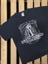 ITEM : Vintage 2005 Disturbed 10000 fists Under License to Giant TAG LABEL : Delta Pro Weight SIZE ON TAG : M CONDITION : Good vintage item - few flaws on bottom of shirt refer to pictures MEASUREMENT APPROXIMATELY (laid on flat floor):- Armpit to armpit : 21” Shoulder to hem : 26.5” **Please compare the measurement with your garment before purchase this item PAYMENT : PAYPAL ONLY SHIPPING : DHL/FedEx EXPRESS SHIPPING (*estimated 3-6 days delivery time depend on location & custom clearance) IMPORTANT BEFORE PURCHASE!! ** PLEASE LEAVE THE CONTACT NUMBER ** DOUBLE CHECK THE SHIPPING ADDRESS (P.O Box are not recomended) ** REVIEW ALL PICTURES AND ASK ANY QUESTION IF NEEDED ** PRICE SUBJECT TO NEGOTIATE MAKE YOUR BEST BINDING OFFER ** NO REFUND NO RETURN ** Please bear in mind that this item had been used previously. Sign of wear and ages might be available on it, so dont expect it to be like NEW condition. All item will be described as is. Thank for dropping by and do follow me for latest items :)