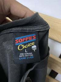 ITEM : Vintage 90s Tshirt TAG LABEL : Soffes SIZE ON TAG : L CONDITION : Good vintage item MEASUREMENT APPROXIMATELY (laid on flat floor):- Armpit to armpit : 22.5 Shoulder to hem : 30.5” ** Please refer to pictures (inch) and compare with your garment before purchase PAYMENT : PAYPAL ONLY SHIPPING : DHL/FedEx EXPRESS (*3-6 days ETA delivery depend on location & customs clearance) !!!!!⚠️IMPORTANT⚠️!!!! ** PLEASE LEAVE THE CONTACT NUMBER ** DOUBLE CHECK THE SHIPPING ADDRESS (P.O Box are not recommended ) ** REVIEW ALL PICTURES AND ASK ANY QUESTION IF NEEDED ** PRICE SUBJECT TO NEGOTIATE MAKE YOUR BEST BINDING OFFER ** NO REFUND NO RETURN ** Please bear in mind that this item had been used previously. Sign of wear and ages might be available on it, so dont expect it to be like NEW condition. All item will be described as is. ** Due to lighting and angle view during photo taken, the color may differ with actual. So kindly enlarge all photos and ask any question before purchase Thank for dropping by and do follow me for latest items :)