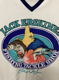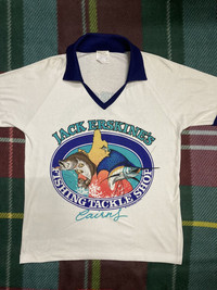 ITEM : Vintage Jack Erskin Tackle Fishing T-shirt TAG LABEL : as picture SIZE ON TAG : 18 / fit M CONDITION : Very good vintage item MEASUREMENT APPROXIMATELY (laid on flat floor):- Armpit to armpit : 19.5” Shoulder to hem : 26” ** Please refer to pictures (inch) and compare with your garment before purchase PAYMENT : PAYPAL ONLY SHIPPING : DHL/FedEx EXPRESS (*3-6 days ETA delivery depend on location & customs clearance) !!!!!⚠️IMPORTANT⚠️!!!! ** PLEASE LEAVE THE CONTACT NUMBER ** DOUBLE CHECK THE SHIPPING ADDRESS (P.O Box are not recommended ) ** REVIEW ALL PICTURES AND ASK ANY QUESTION IF NEEDED ** PRICE SUBJECT TO NEGOTIATE MAKE YOUR BEST BINDING OFFER ** NO REFUND NO RETURN ** Please bear in mind that this item had been used previously. Sign of wear and ages might be available on it, so dont expect it to be like NEW condition. All item will be described as is. ** Due to lighting and angle view during photo taken, the color may differ with actual. So kindly enlarge all photos and ask any question before purchase Thank for dropping by and do follow me for latest items :)