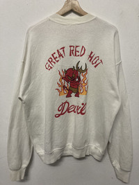 ITEM : Vintage Rare Great Red Hot Devil Dogtown Big Logo Sweatshirt TAG LABEL : NA SIZE ON TAG : NA CONDITION : Good vintage item - small hole in front of shirt - had few yellowish spot on shirt refer to pictures not too clear MEASUREMENT APPROXIMATELY (laid on flat floor):- Armpit to armpit : 23.5” Shoulder to hem : 27.5” ** Please refer to pictures (inch) and compare with your garment before purchase PAYMENT : PAYPAL ONLY SHIPPING : DHL/FedEx EXPRESS (*3-6 days ETA delivery depend on location & customs clearance) IMPORTANT BEFORE PURCHASE!! ** PLEASE LEAVE THE CONTACT NUMBER ** DOUBLE CHECK THE SHIPPING ADDRESS (P.O Box are not recommended ) ** REVIEW ALL PICTURES AND ASK ANY QUESTION IF NEEDED ** PRICE SUBJECT TO NEGOTIATE MAKE YOUR BEST BINDING OFFER ** NO REFUND NO RETURN ** Please bear in mind that this item had been used previously. Sign of wear and ages might be available on it, so dont expect it to be like NEW condition. All item will be described as is. Thank for dropping by and do follow me for latest items :)