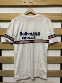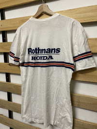 ITEM : Vintage Rothmans Honda Tshirt TAG LABEL : Honda SIZE ON TAG : NA fit M CONDITION : Very good vintage item MEASUREMENT APPROXIMATELY (laid on flat floor):- Armpit to armpit : 18.5” Shoulder to hem : 28” ** Please refer to pictures (inch) and compare with your garment before purchase PAYMENT : PAYPAL ONLY SHIPPING : DHL/FedEx EXPRESS (*3-6 days ETA delivery depend on location & customs clearance) !!!!!⚠️IMPORTANT⚠️!!!! ** PLEASE LEAVE THE CONTACT NUMBER ** DOUBLE CHECK THE SHIPPING ADDRESS (P.O Box are not recommended ) ** REVIEW ALL PICTURES AND ASK ANY QUESTION IF NEEDED ** PRICE SUBJECT TO NEGOTIATE MAKE YOUR BEST BINDING OFFER ** NO REFUND NO RETURN ** Please bear in mind that this item had been used previously. Sign of wear and ages might be available on it, so dont expect it to be like NEW condition. All item will be described as is. ** Due to lighting and angle view during photo taken, the color may differ with actual. So kindly enlarge all photos and ask any question before purchase Thank for dropping by and do follow me for latest items :)