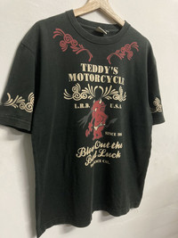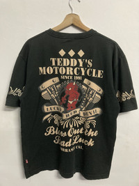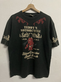 ‼️Don’t wait..make your offer ‼️ ITEM : Vintage Tedman Teddy’s Motorcycle T-shirt TAG LABEL : Ted Company SIZE ON TAG : 44/ fit L MATERIAL : Cotton CONDITION : Good vintage item - Had one pinhole and a bit faded on the shirt. Please refer to pictures MEASUREMENT APPROXIMATELY (laid on flat floor):- Armpit to armpit : 22” Shoulder to hem : 27” ** Please refer to pictures (inch) and compare with your garment before purchase PAYMENT : PAYPAL ONLY SHIPPING : DHL/FedEx EXPRESS **estimated 3-6 days ETA delivery depend on location & customs clearance **we have a right to cancel the purchases if buyer’s location is in remote area as it’s will consume a high cost for shipping unless buyers agree to pay an additional fees (rarely happen) !!!!!⚠️IMPORTANT⚠️!!!! ** PLEASE LEAVE THE CONTACT NUMBER ** DOUBLE CHECK THE SHIPPING ADDRESS (P.O Box are not recommended ) ** REVIEW ALL PICTURES AND ASK ANY QUESTION IF NEEDED ** PRICE SUBJECT TO NEGOTIATE MAKE YOUR BEST BINDING OFFER ** NO REFUND NO RETURN ** Please bear in mind that this item had been used previously. Sign of wear and ages might be available on it, so dont expect it to be like NEW condition. All item will be described as is. ** Due to lighting and angle view during photo taken, the color may differ with actual. So kindly enlarge all photos and ask any question before purchase ⚠️If you have multiple item on your mind with some budget, don’t hesitate to let me know. Thank for dropping by and do follow me for latest items :)