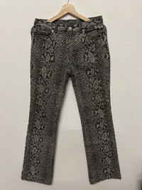 ITEM : Vintage World Jeans International Python Design Inspired Hysteric Glamour Pants TAG LABEL : No label SIZE ON TAG : L CONDITION : Very good used item MEASUREMENT APPROXIMATELY(laid on flat floor):- Waist : 30” Hips : 19” Rise : 10” Thigh : 10” Knee : 8” Out seam : 43” In Seam : 33.5” Leg Opening : 9.5” *Please compare the measurement with your garment before purchase this item PAYMENT : PAYPAL ONLY SHIPPING : DHL EXPRESS SHIPPING (estimated 1-6 days delivery time depend on location & custom clearance) IMPORTANT BEFORE PURCHASE!! ** PLEASE LEAVE THE CONTACT NUMBER ** DOUBLE CHECK THE SHIPPING ADDRESS ** REVIEW ALL PICTURES AND ASK ANY ADDITIONAL IF NEEDED ** OFFER REASONABLE PRICE ** NO REFUND NO RETURN ** Please bear in mind that this item had been used previously. Sign of wear and ages might be available on it, so dont expect it to be like NEW condition. All item will be described as is. Thank for dropping by and do follow me for latest items :)