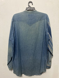 ‼️Don’t wait..make your offer ‼️ ITEM : Vintage Wrangler X-Long Tails Denim Shirt TAG LABEL : Wrangler SIZE ON TAG : NA/ fit XXL CONDITION : Good vintage item MEASUREMENT APPROXIMATELY (laid on flat floor):- Armpit to armpit : 26” Shoulder to hem : 31” (f) / 35” (r) ** Please refer to pictures (inch) and compare with your garment before purchase PAYMENT : PAYPAL ONLY SHIPPING : DHL/FedEx EXPRESS **estimated 3-6 days ETA delivery depend on location & customs clearance **we have a right to cancel the purchases if buyer’s location is in remote area as it’s will consume a high cost for shipping unless buyers agree to pay an additional fees (rarely happen) !!!!!⚠️IMPORTANT⚠️!!!! ** PLEASE LEAVE THE CONTACT NUMBER ** DOUBLE CHECK THE SHIPPING ADDRESS (P.O Box are not recommended ) ** REVIEW ALL PICTURES AND ASK ANY QUESTION IF NEEDED ** PRICE SUBJECT TO NEGOTIATE MAKE YOUR BEST BINDING OFFER ** NO REFUND NO RETURN ** Please bear in mind that this item had been used previously. Sign of wear and ages might be available on it, so dont expect it to be like NEW condition. All item will be described as is. ** Due to lighting and angle view during photo taken, the color may differ with actual. So kindly enlarge all photos and ask any question before purchase ⚠️If you have multiple item on your mind with some budget, don’t hesitate to let me know. Thank for dropping by and do follow me for latest items :)