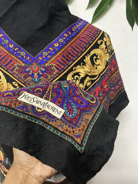 ITEM : Vintage Yves Saint Laurent Foulard Silk Scarf 34x34 TAG LABEL : yvessaintlaurent SIZE ON TAG : OS CONDITION : Very good branded vintage item - only had a few very small pinholes on item please refer to pictures MEASUREMENT APPROXIMATELY (laid on flat floor):- Length x Width: 34x34” inch **Please compare the measurement with your garment before purchase this item PAYMENT : PAYPAL ONLY SHIPPING : DHL EXPRESS SHIPPING (estimated 1-6 days delivery time depend on location & custom clearance) IMPORTANT BEFORE PURCHASE!! ** PLEASE LEAVE THE CONTACT NUMBER ** DOUBLE CHECK THE SHIPPING ADDRESS ** REVIEW ALL PICTURES AND ASK ANY QUESTION IF NEEDED ** PRICE SUBJECT TO NEGOTIATE MAKE YOUR BEST BINDING OFFER ** NO REFUND NO RETURN ** Please bear in mind that this item had been used previously. Sign of wear and ages might be available on it, so dont expect it to be like NEW condition. All item will be described as is. Thank for dropping by and do follow me for latest items :)