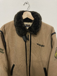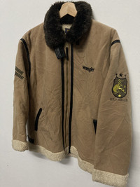 ITEM : Wrangler Cowboy Jeans B-3 Sherpa Bomber Jacket TAG LABEL : Wrangler MADE : China π¨π³ SIZE ON TAG : 160/76-84 CONDITION : Very good used item - Only has a stains on certain area. Please refer to pictures. MEASUREMENT APPROXIMATELY (laid on flat floor):- Armpit to armpit : 21.5β inch Shoulder to hem : 26β inch Sleeve Length : 21β inch **Please compare the measurement with your garment before purchase this item PAYMENT : PAYPAL ONLY SHIPPING : DHL EXPRESS SHIPPING (estimated 1-6 days delivery time depend on location & custom clearance) IMPORTANT BEFORE PURCHASE!! ** PLEASE LEAVE THE CONTACT NUMBER ** DOUBLE CHECK THE SHIPPING ADDRESS ** REVIEW ALL PICTURES AND ASK ANY ADDITIONAL IF NEEDED ** OFFER REASONABLE PRICE ** NO REFUND NO RETURN ** Please bear in mind that this item had been used previously. Sign of wear and ages might be available on it, so dont expect it to be like NEW condition. All item will be described as is. Thank for dropping by and do follow me for latest items :)