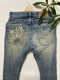 ITEM : Stussy Rough & Rugged Distressed Skinny Jeans TAG LABEL : Stussy Rough & Rugged SIZE ON TAG : 28~29” CONDITION : Distressed - please refer to pictures for overall conditions MEASUREMENT APPROXIMATELY(laid on flat floor):- Waist : 28~29” inch Hips : 18” inch Rise : 11” inch Thigh : 9” inch Out seam : 40” inch In Seam : 29.5” inch Leg Opening : 6.5” inch *Please compare the measurement with your garment before purchase this item PAYMENT : PAYPAL ONLY SHIPPING : DHL EXPRESS SHIPPING (estimated 1-6 days delivery time depend on location & custom clearance) IMPORTANT BEFORE PURCHASE!! ** PLEASE LEAVE THE CONTACT NUMBER ** DOUBLE CHECK THE SHIPPING ADDRESS ** REVIEW ALL PICTURES AND ASK ANY QUESTION IF NEEDED ** PRICE SUBJECT TO NEGOTIATE MAKE YOUR BEST BINDING OFFER ** NO REFUND NO RETURN ** Please bear in mind that this item had been used previously. Sign of wear and ages might be available on it, so dont expect it to be like NEW condition. All item will be described as is. Thank for dropping by and do follow me for latest items :)