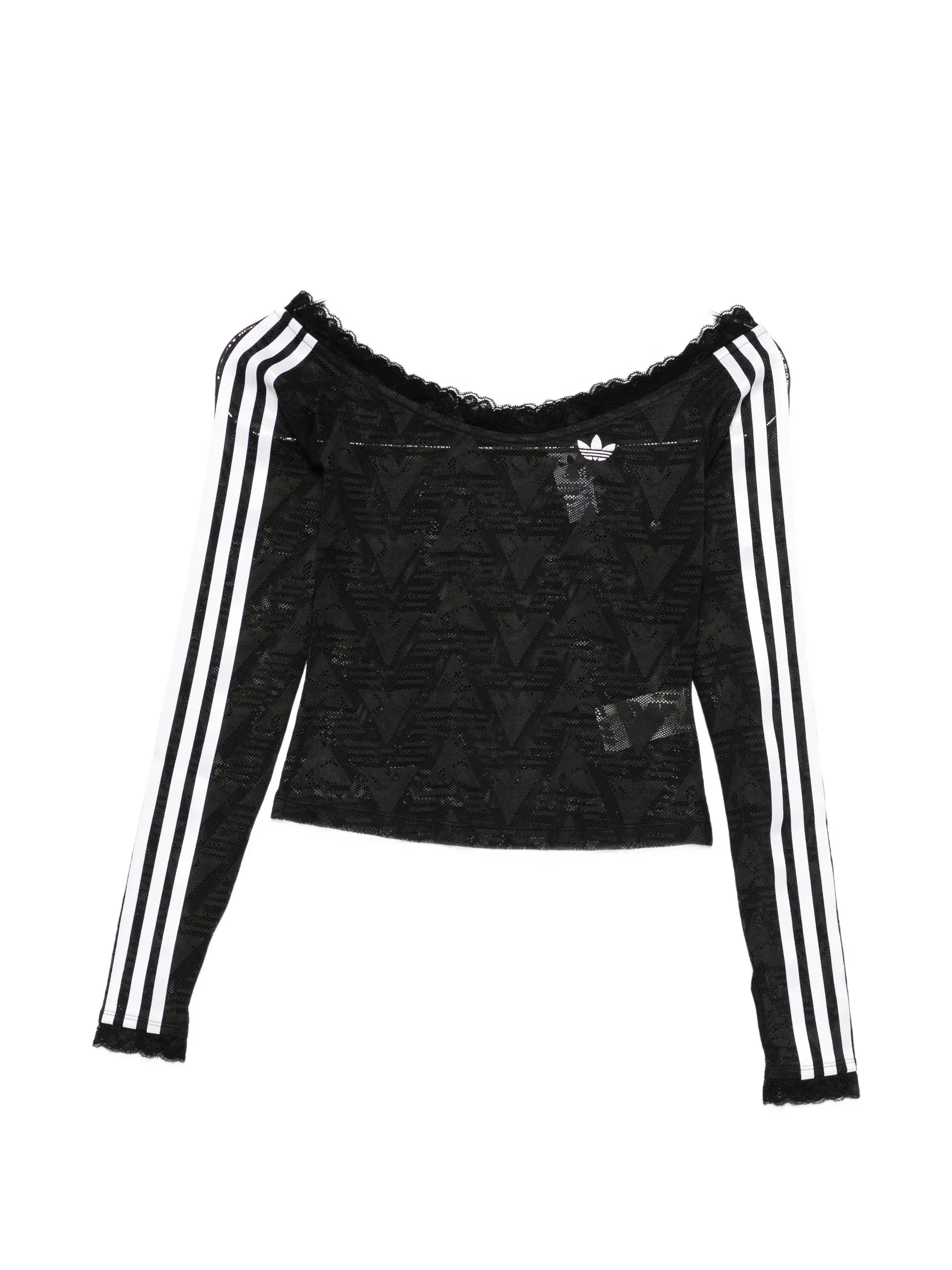black lace trim long sleeves triple stripe detail textured design - Color: BLACK - Made in: Viet Nam - Designer Style ID: KD0350 Composition and care Recycled Polyester: 92.0%, Elastane: 8.0%