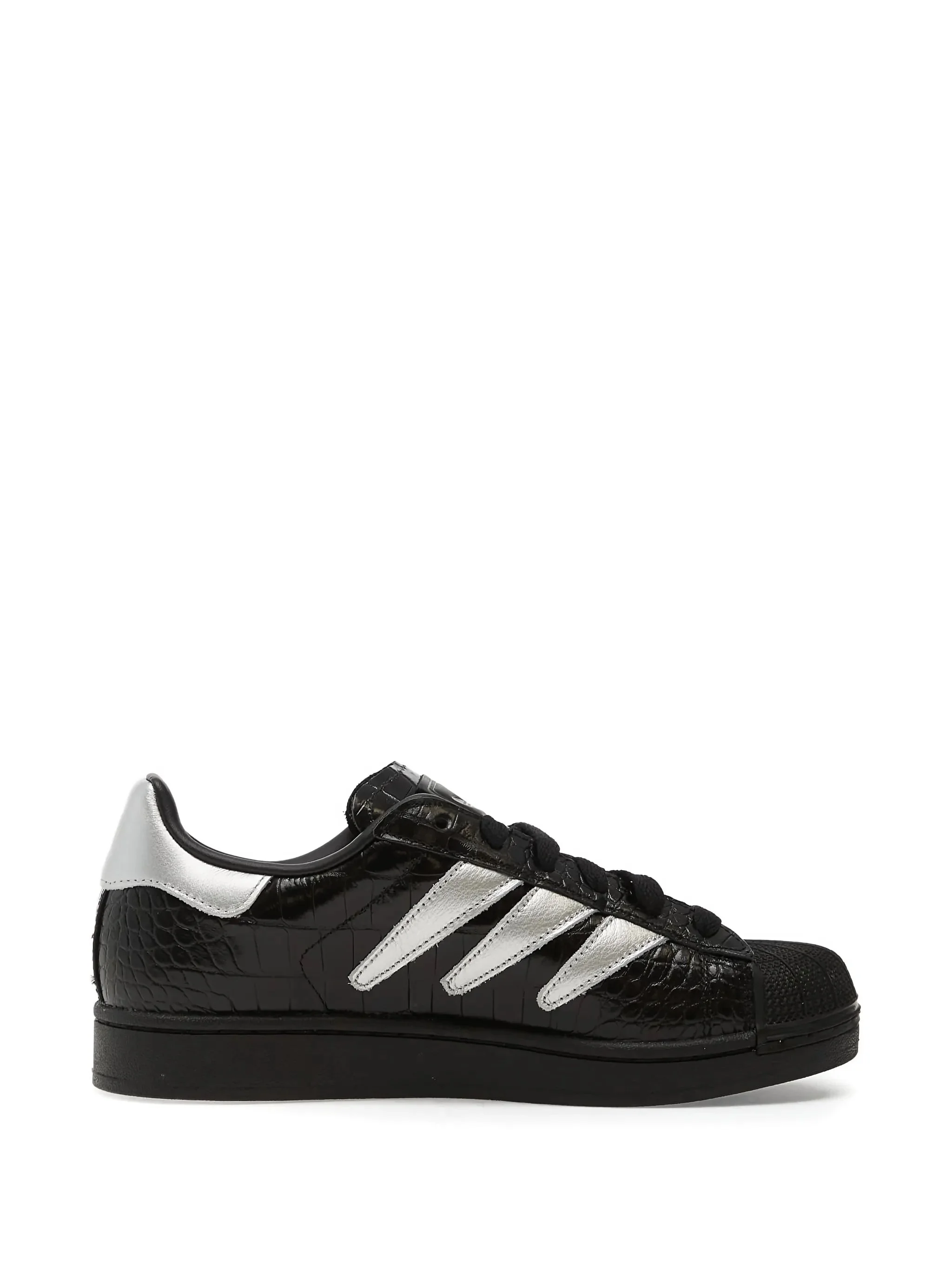 black reptile effect silver-tone stripes lace-up fastening round toe silver-tone heel counter - Color: BLACK/SILVER - Made in: Bangladesh - Designer Style ID: HQ9303 Composition and care Outer Composition Calf Leather: 100.0%, Lining Composition Calf Leather: 100.0%, Sole Composition Rubber: 100.0%