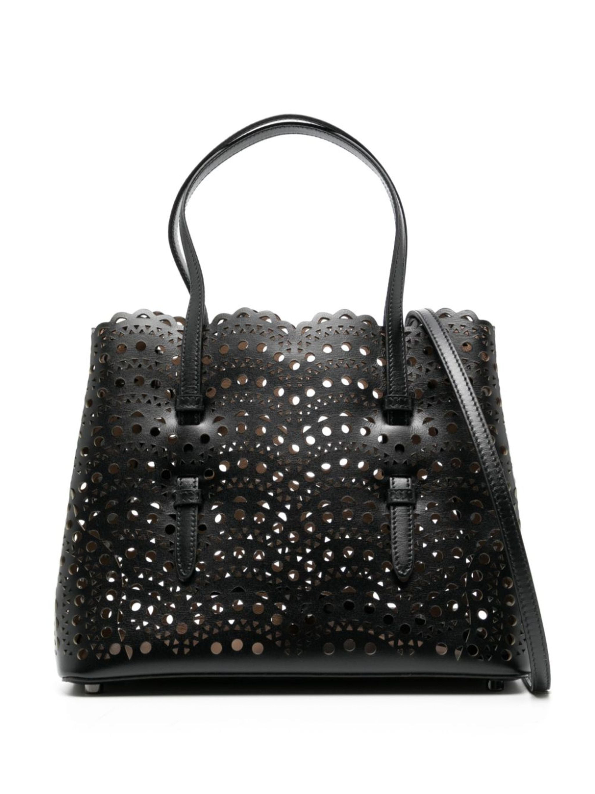 black calf leather removable pouch cut-out detailing adjustable detachable shoulder strap leather top handles metal feet - depth: 12.0 centimetres, handle: 13.0 centimetres, height: 20.0 centimetres, strap: 52.0 centimetres, width: 25.0 centimetres - Made in: Italy - Designer Style ID: AA1S06725C0A44 999 Composition and care Outer Composition Calfskin: 100.0%, Calf Leather: 100.0%