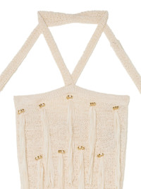 beige halterneck tie fastening fringe detailing bead detailing - Color: NEUTRALS - Made in: Italy - Designer Style ID: LWHI05ER25KN I001 0300 Composition and care Cotton: 82.0%, Polyester: 18.0%, Acrylonitrile Butadiene Styrene (abs): 100.0%