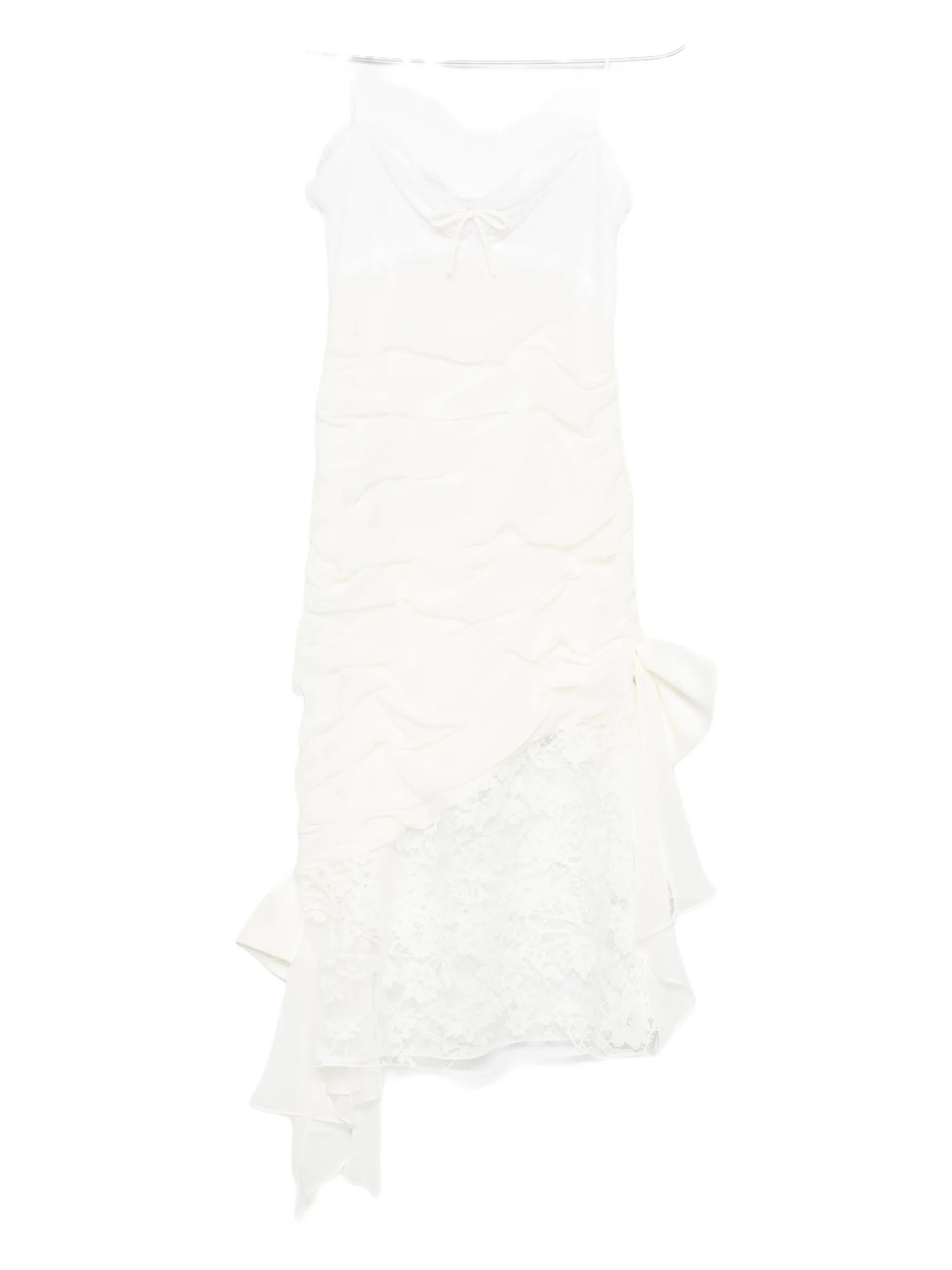 white silk lace panel draped bodice bow detail ruffled detail Made in Italy - Color: WHITE - Made in: Italy - Designer Style ID: FABX4123 F2890 0822 Composition and care Outer Composition Silk: 100.0%, Lining Composition Silk: 100.0%, Outer Composition Cotton: 75.0%, Outer Composition Polyamide: 25.0%