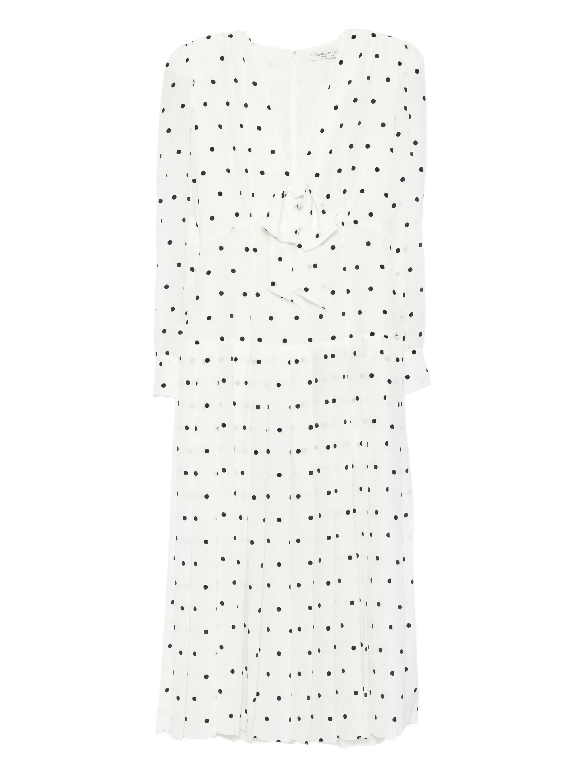 white polka dot pattern pleated skirt long sleeves V-neck bow detail - Color: WHITE/BLUE - Made in: Italy - Designer Style ID: FABX4111 F4655 0822 Composition and care Outer Composition Silk: 100.0%, Lining Composition Polyamide: 100.0%, Lining Composition Polyester: 100.0%