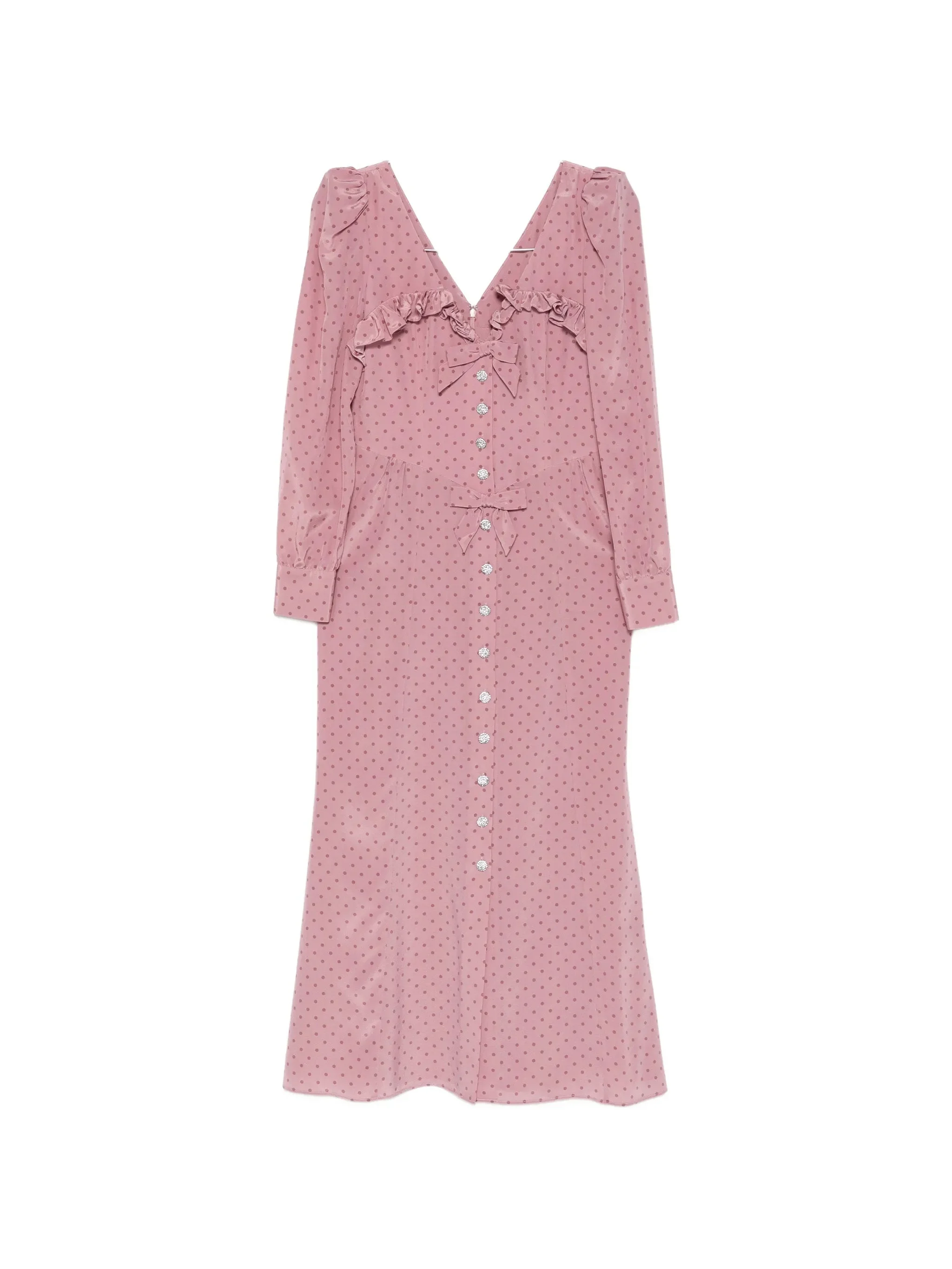 pink polka dot print V-neck bow detail embellished buttons ruffled trim - Color: PINK - Made in: Italy - Designer Style ID: FABX4314 F4686 1941 Composition and care Outer Composition Silk: 100.0%, Lining Composition Polyamide: 100.0%, Outer Composition Polyester: 100.0%, Lining Composition Polyester: 100.0%, Outer Composition Metal: 100.0%, Outer Composition Glass: 100.0%