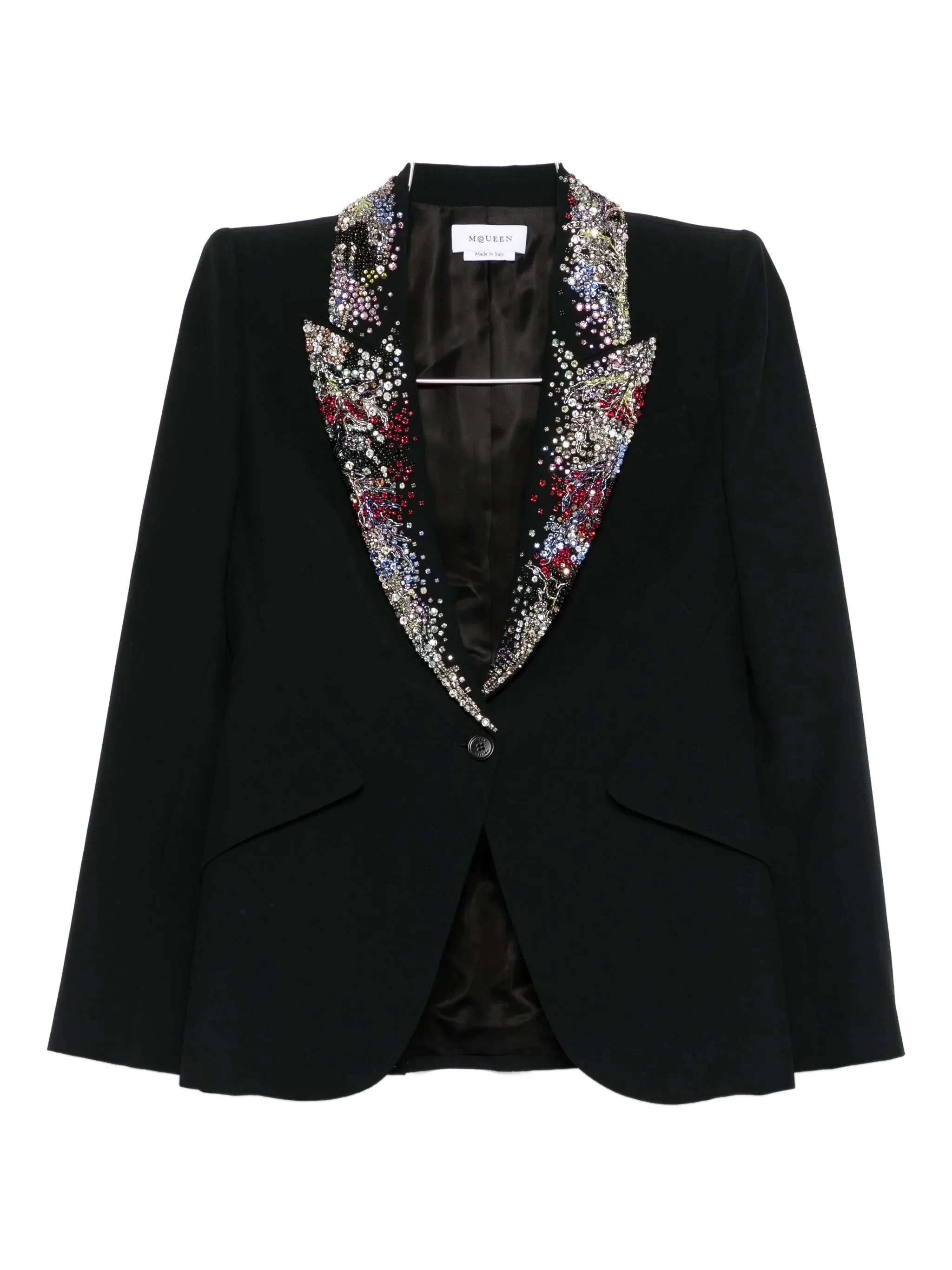 black embellished collar single-breasted front button fastening notched lapels flap pockets - Color: BLACK - Made in: Italy - Designer Style ID: 848632 QEAAA 1000 Composition and care Acetate: 48.0%, Viscose: 52.0%