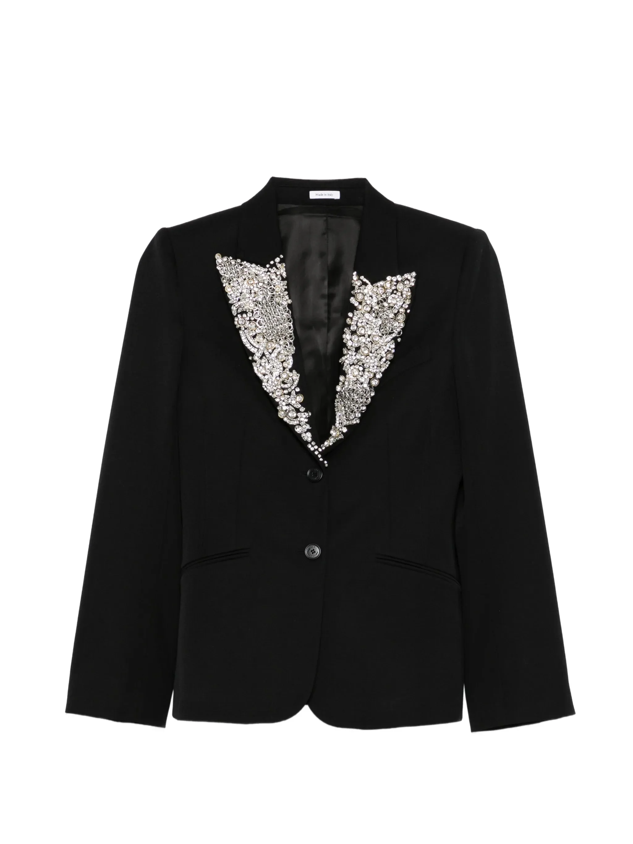 black embellished lapel single-breasted button fastening peak lapels long sleeves - Color: BLACK - Made in: Italy - Designer Style ID: 852197 QJAAC 1000 Composition and care Lining Composition Cupro: 100.0%, Outer Composition Wool: 100.0%, Outer Composition Metal: 100.0%, Outer Composition Glass: 100.0%