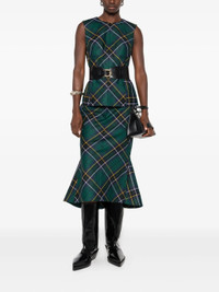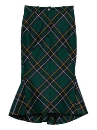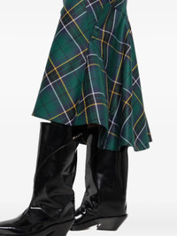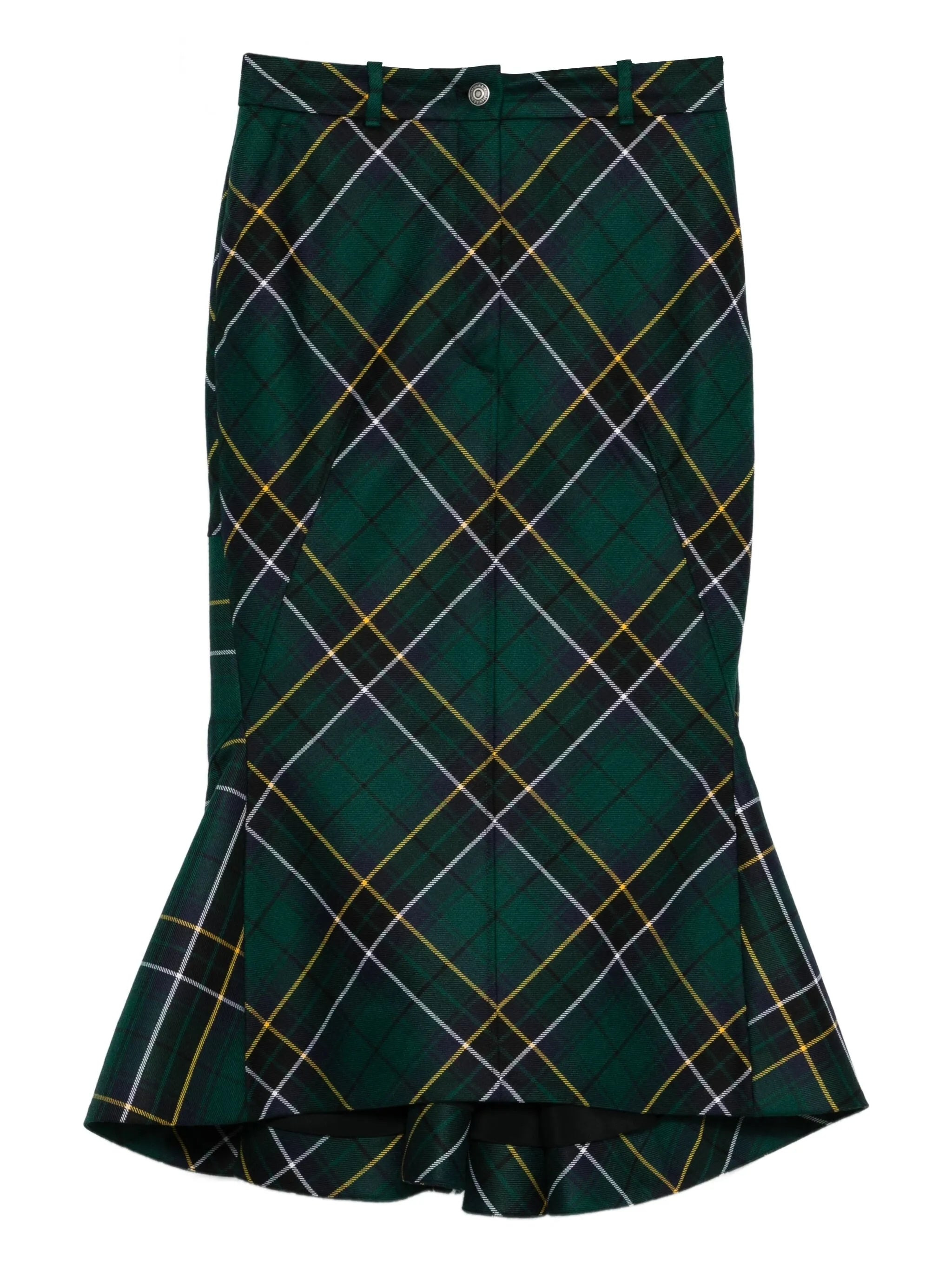 dark-green plaid-check pattern flared hem high waist wool button fastening - Color: BLUE/GREEN - Made in: Italy - Designer Style ID: 839654 QJAFI 4348 Composition and care Lining Composition Silk: 26.0%, Lining Composition Acetate: 74.0%, Outer Composition Wool: 100.0%