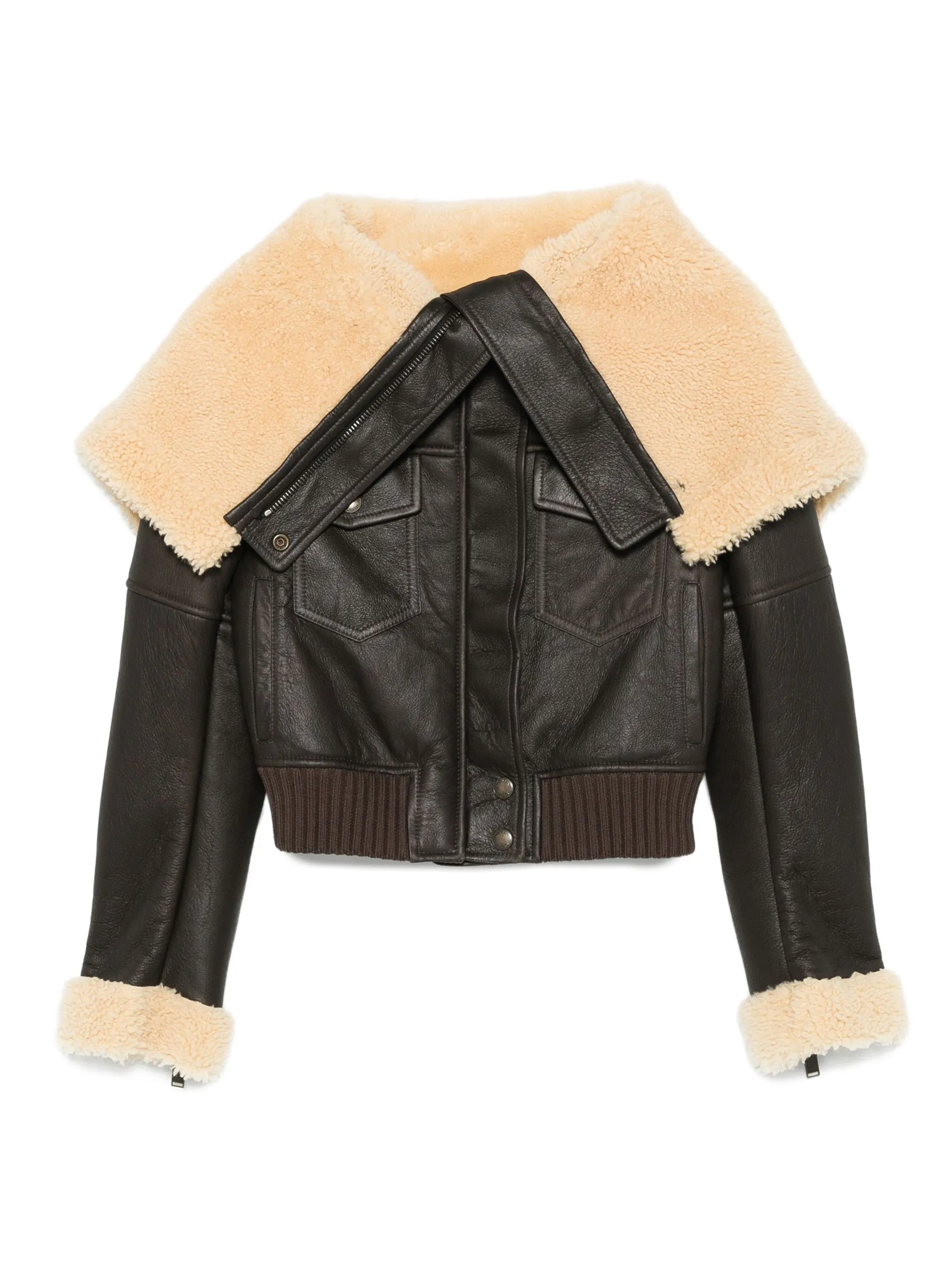 brown shearling collar front zip fastening side welt pockets ribbed hem and cuffs - Color: BROWN - Made in: Italy - Designer Style ID: 838597 Q5APS 2129 Composition and care Calf Leather: 100.0%