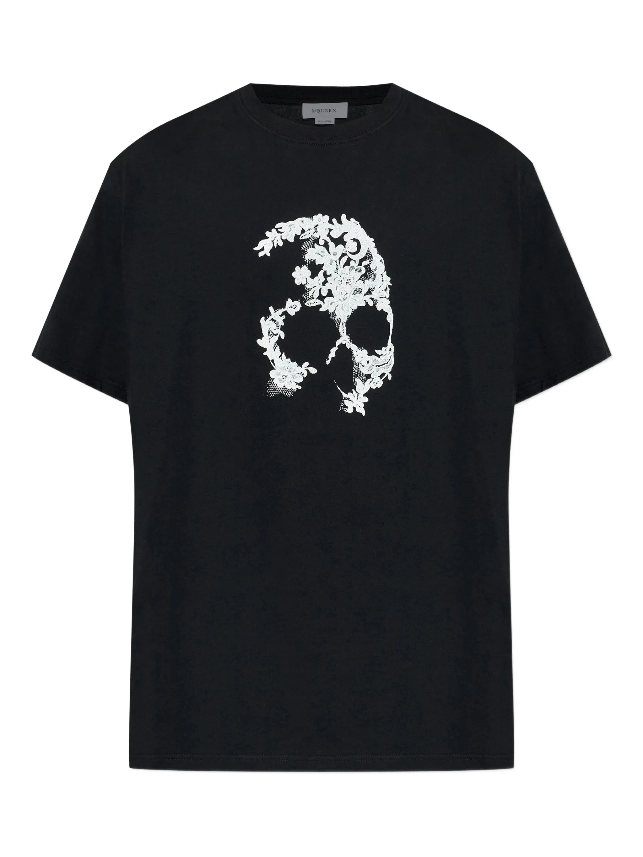 black skull print crew neck short sleeves straight hem - Color: BLACK - Made in: Italy - Designer Style ID: 857145 QTAEG 0520 Composition and care Cotton: 100.0%