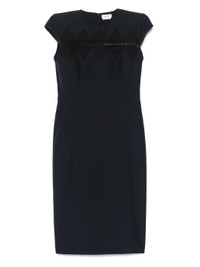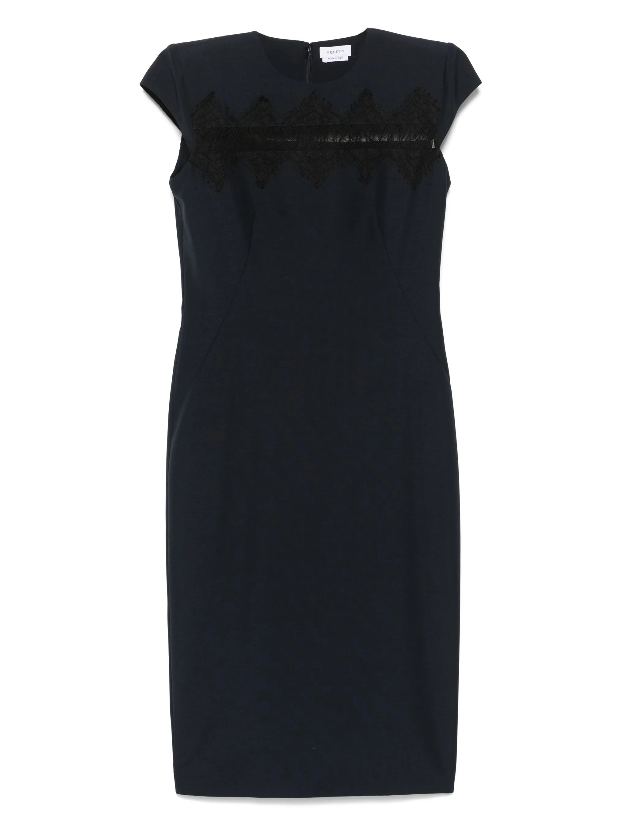 navy blue concealed rear hook and zip fastening shoulder pads rear slit lace panelling - Color: BLUE - Made in: Italy - Designer Style ID: 830138 QJAEK 4100 Composition and care Lining Composition Silk: 26.0%, Outer Composition Polyamide: 40.0%, Lining Composition Acetate: 74.0%, Outer Composition Viscose: 60.0%, Outer Composition Mohair: 25.0%, Outer Composition Wool: 75.0%