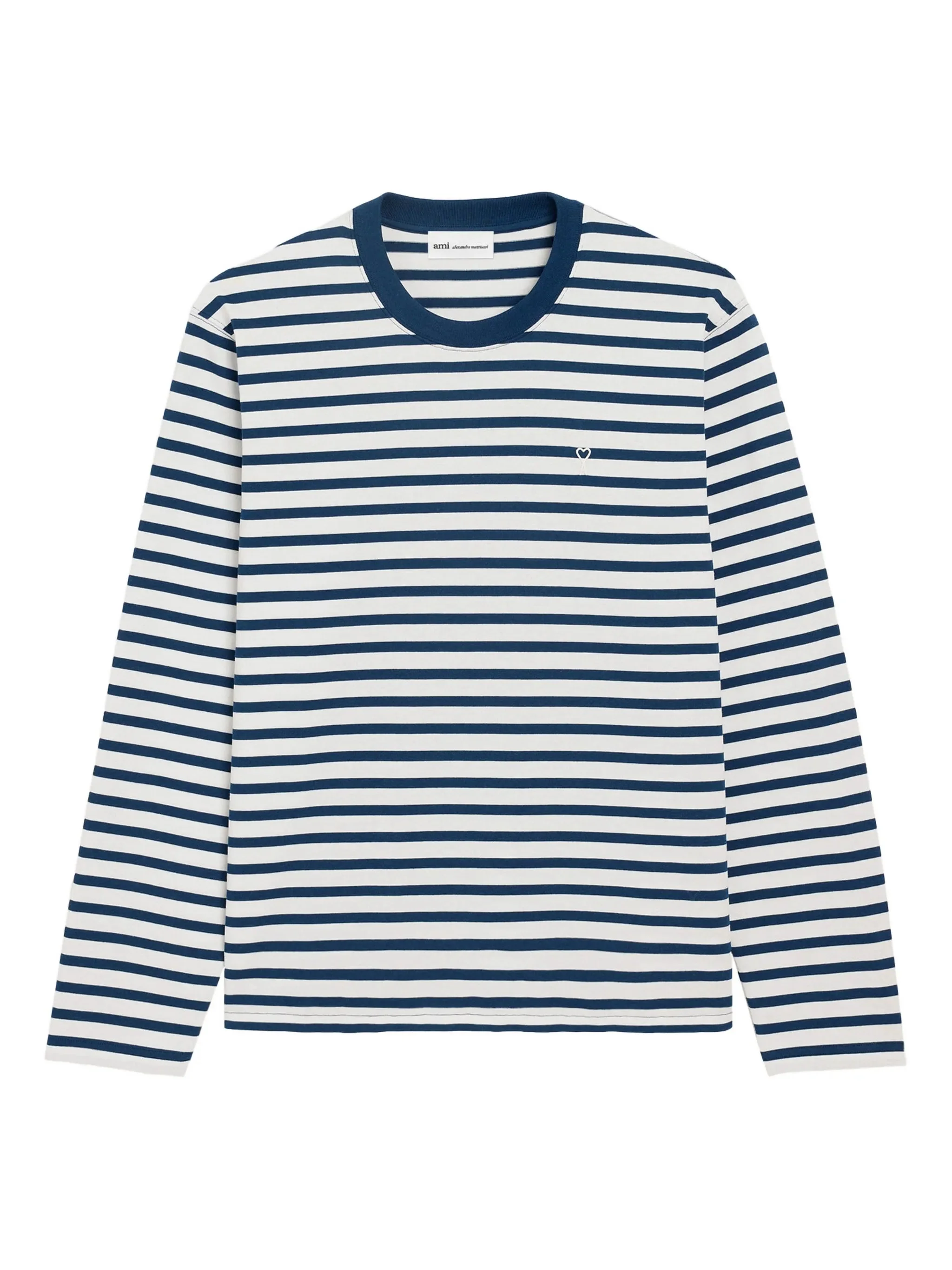 BLUE COTTON LONG SLEEVES MARINIERE AMI DE COEUR T-SHIRT
