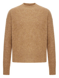 camel brown alpaca wool ribbed knit long sleeves Ami signature logo straight hem - Color: BROWN - Made in: Italy - Designer Style ID: HKS824.KN0021 280 Composition and care Alpaca Wool: 100.0%