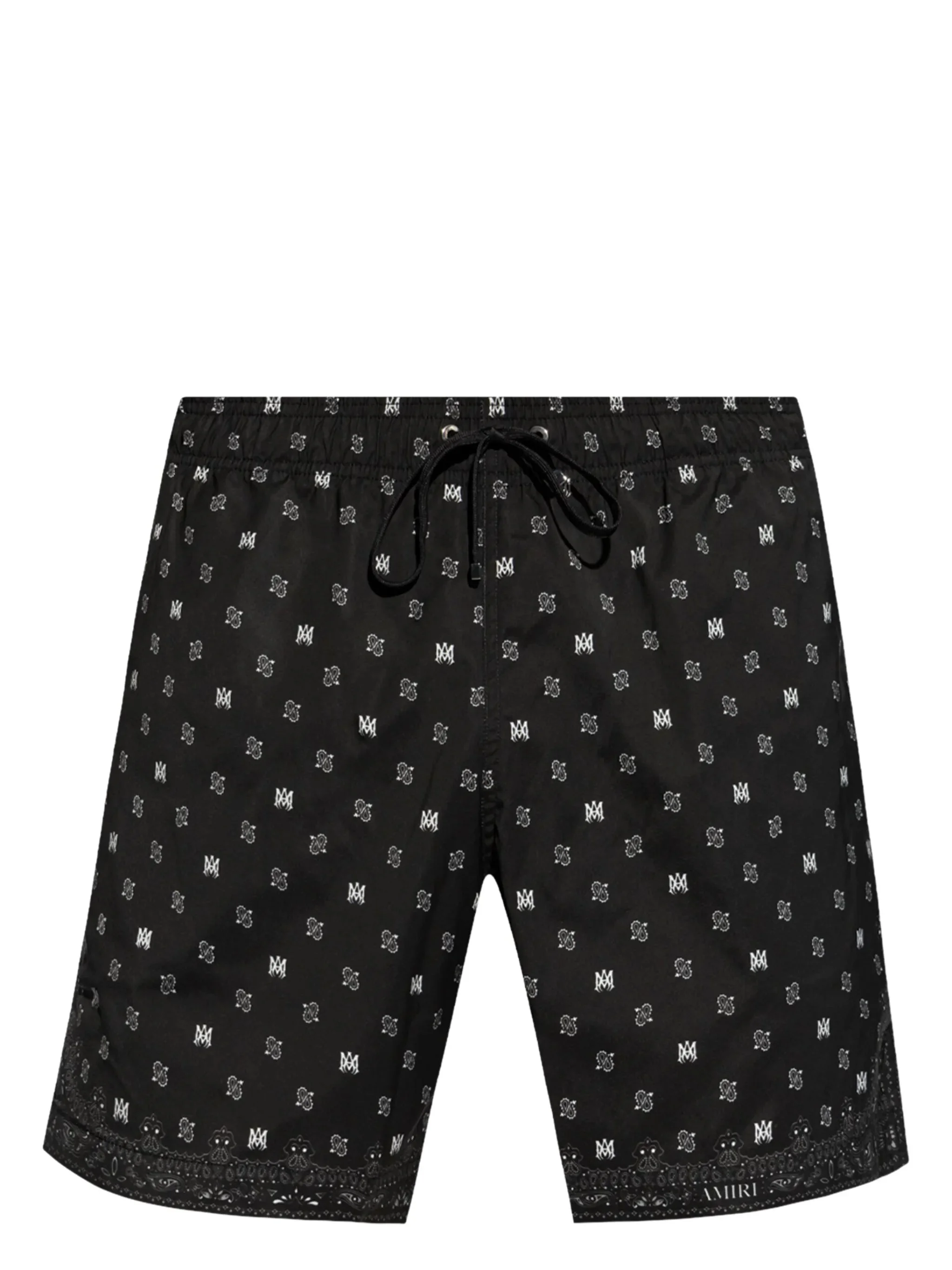 black/white stretch-design paisley print monogram print contrasting border logo print at the hem elasticated drawstring waistband slip pockets to the sides straight hem Be mindful to try on swimwear over your own garments. - Color: BLACK - Made in: Italy - Designer Style ID: AMSWTK1016 BLACK Composition and care Polyester: 90%, Spandex/elastane: 10.0%