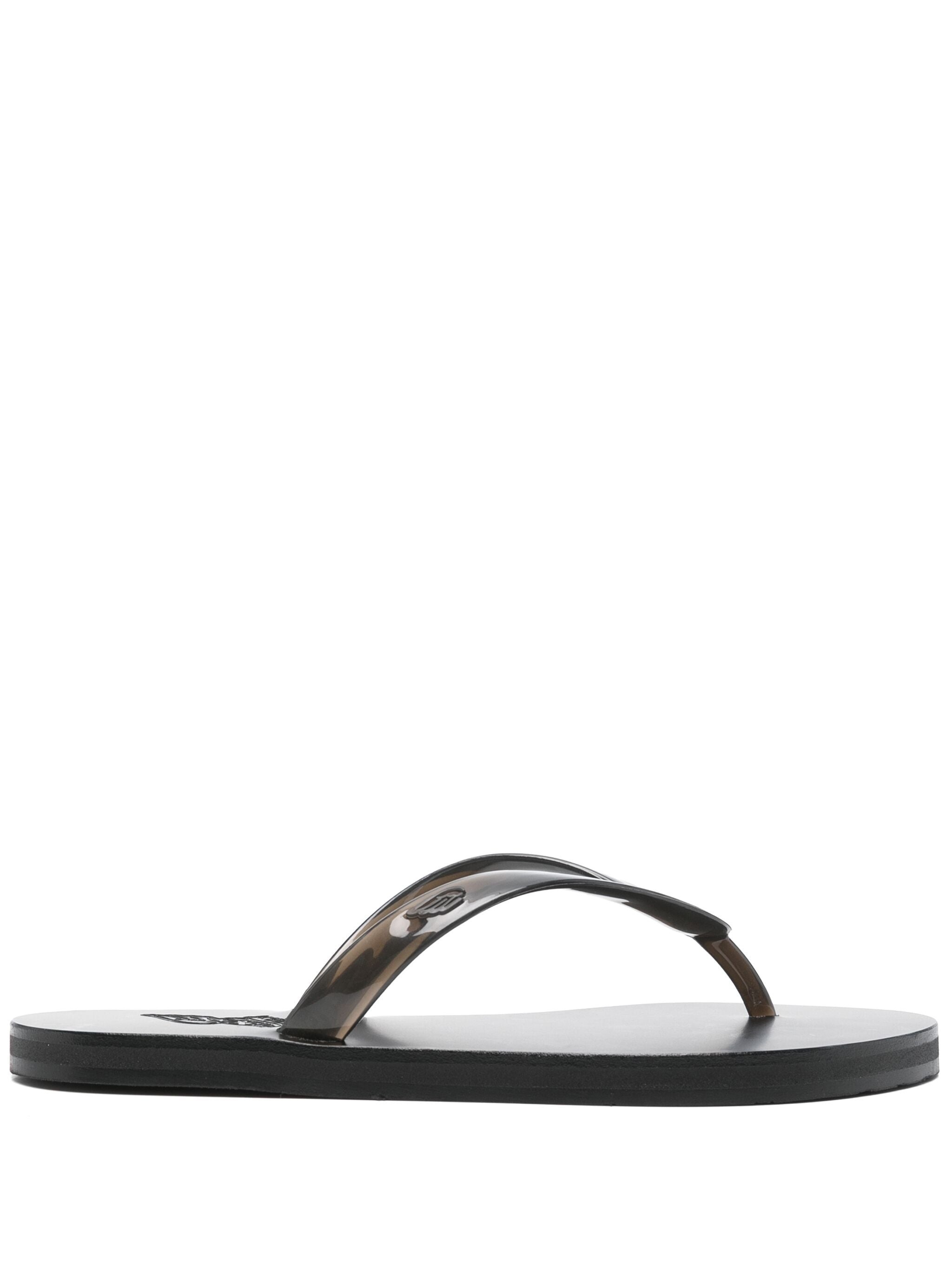 black thong strap round toe branded insole flat rubber sole - Color: BLACK - Made in: Greece - Designer Style ID: SAIONARA JELLY JELLY/LEAT BLACK Composition and care Outer Composition Rubber: 100.0%, Lining Composition Rubber: 100.0%, Sole Composition Rubber: 100.0%