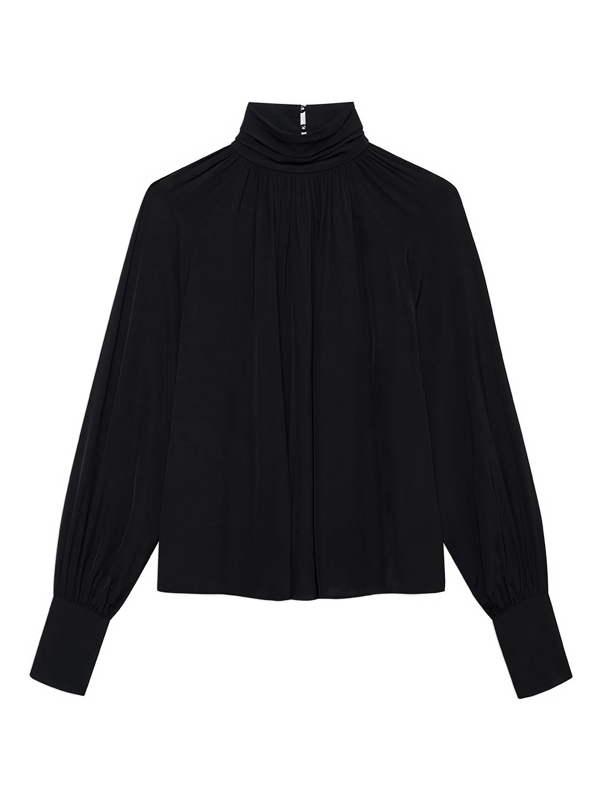 black draped long sleeves button fastening at the rear gathered detailing cuffed sleeves - Color: BLACK - Made in: China - Designer Style ID: A-07-11598 BLK26 Composition and care Fabric: 100.0%