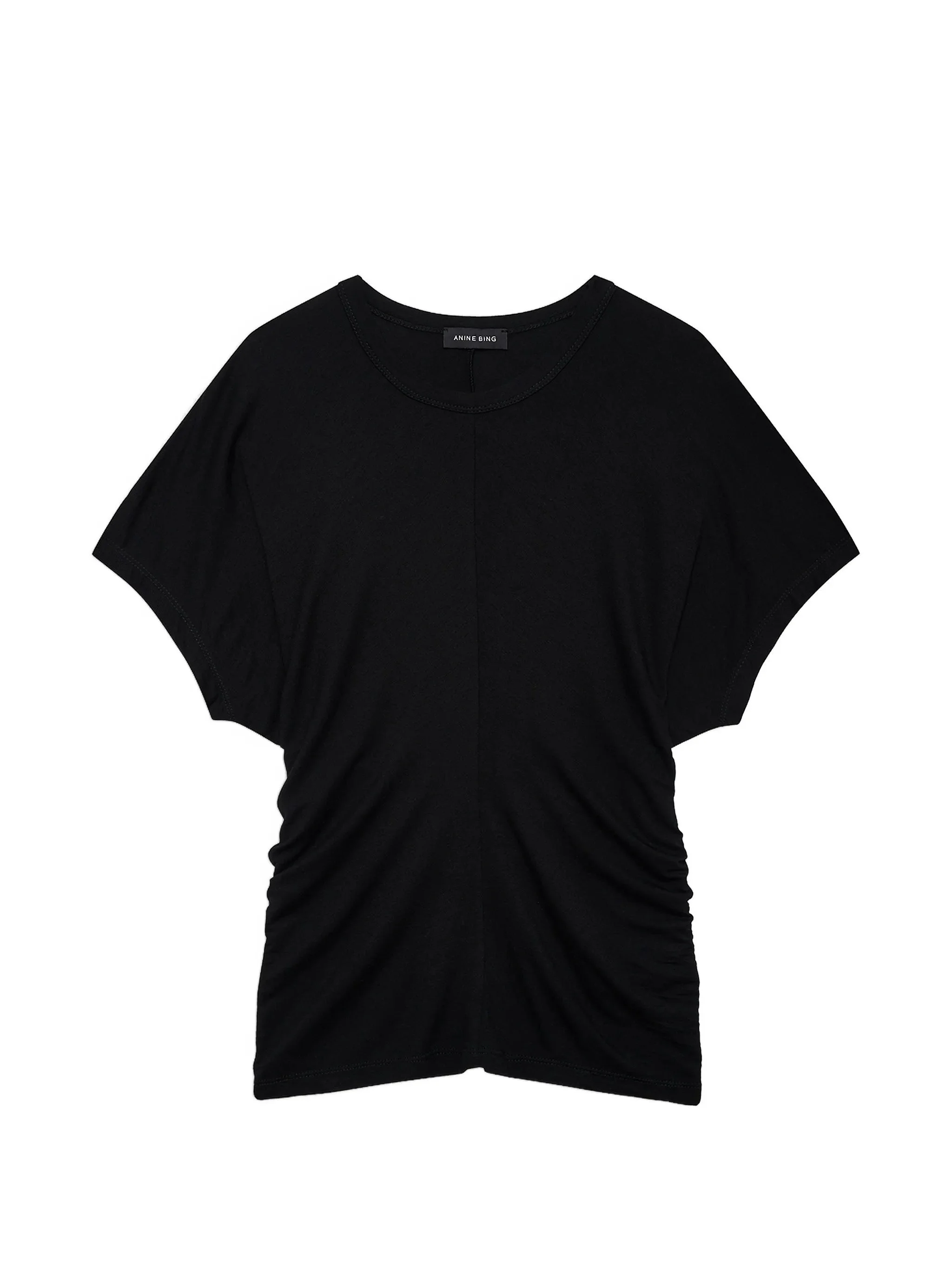 black crew neck draped detail short sleeves - Color: BLACK - Made in: Morocco - Designer Style ID: A-08-12002 BLK26 Composition and care Viscose: 95.0%, Elastane: 5.0%