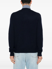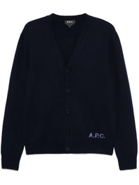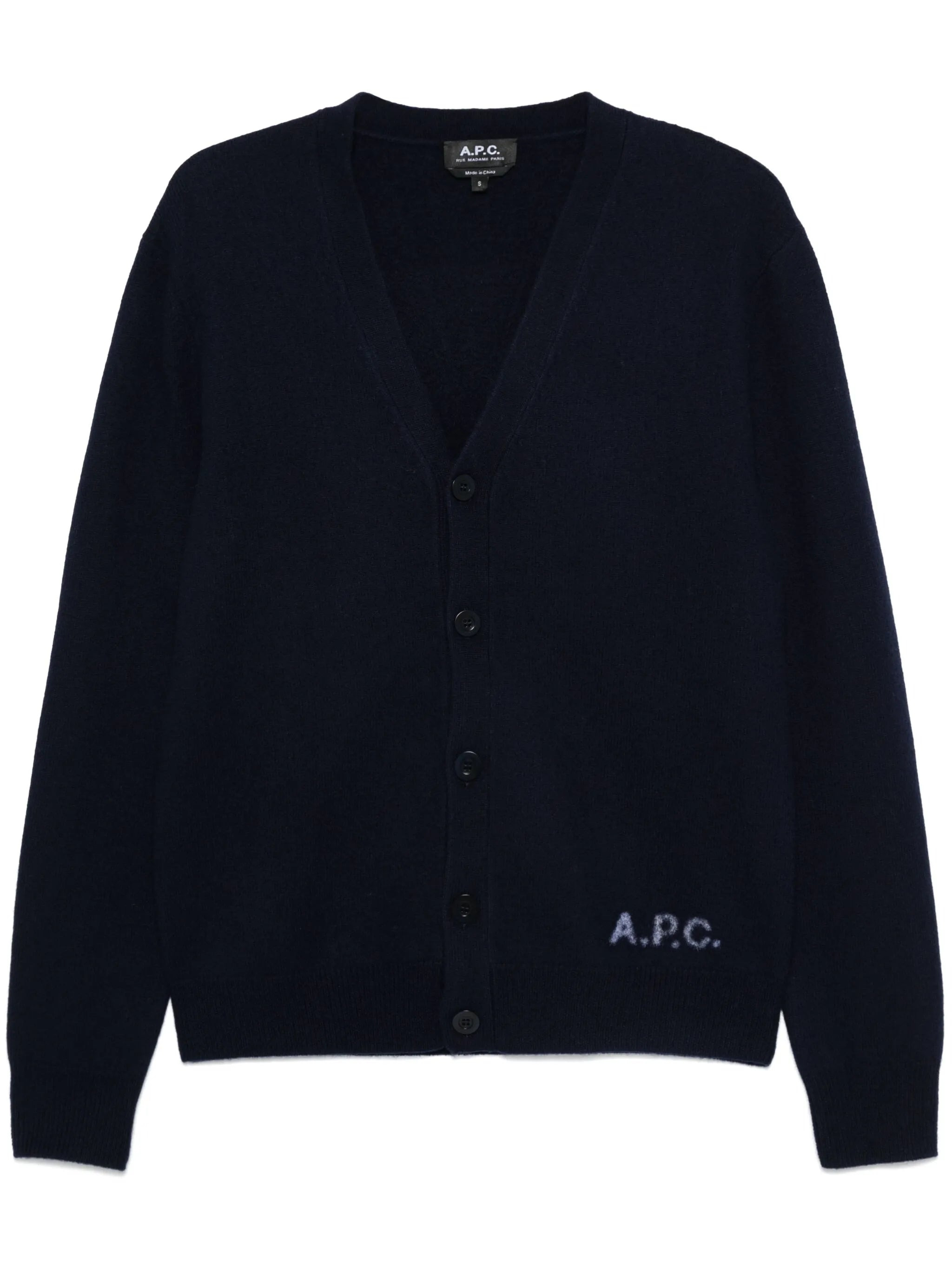 navy blue virgin wool knitted construction front button fastening ribbed V-neck long sleeves ribbed cuffs and hem intarsia-knit logo - Color: BLUE - Made in: France - Designer Style ID: WVBDK H22305 IAK Composition and care Virgin Wool: 100.0%