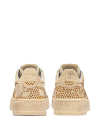 sandy cream rhinestone embellishment suede accents flat laces rubber sole - Designer Style ID: AULW NA03 Composition and care Outer Composition Leather: 100.0%, Outer Composition Suede: 100.0%, Sole Composition Rubber: 100.0%, Lining Composition Fabric: 100.0%