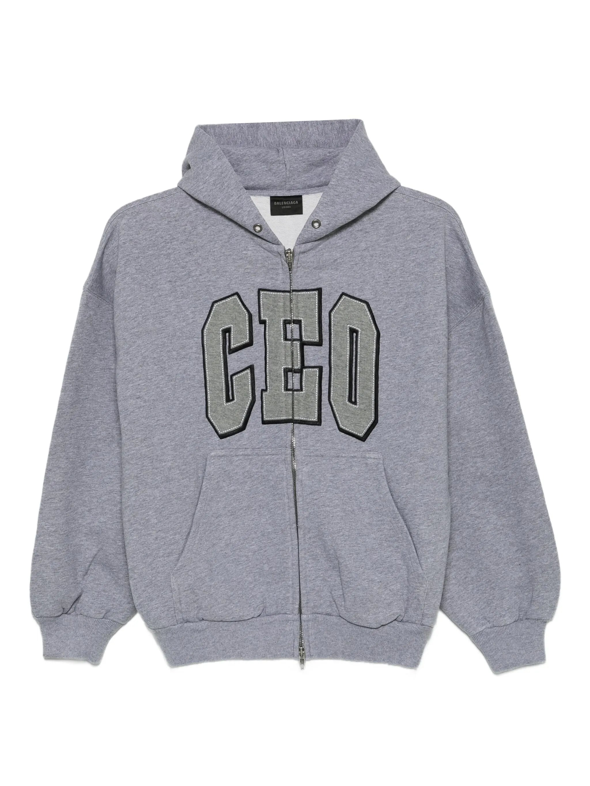 grey hoodie zip fastening long sleeves CEO-patch - Color: GREY - Made in: Portugal - Designer Style ID: 833399 TSVP2 1300 Composition and care Cotton: 100.0%, Polyester: 100.0%