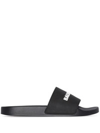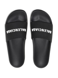 black/white rubber open toe moulded footbed slip-on style embossed logo to the front flat rubber sole - heel: 2.0 centimetres, sole height: 3.0 centimetres - Color: BLACK - Made in: Italy - Designer Style ID: 565826 W1S80 1006 Composition and care Outer Composition Rubber: 100.0%, Lining Composition Rubber: 100.0%, Sole Composition Rubber: 100.0%