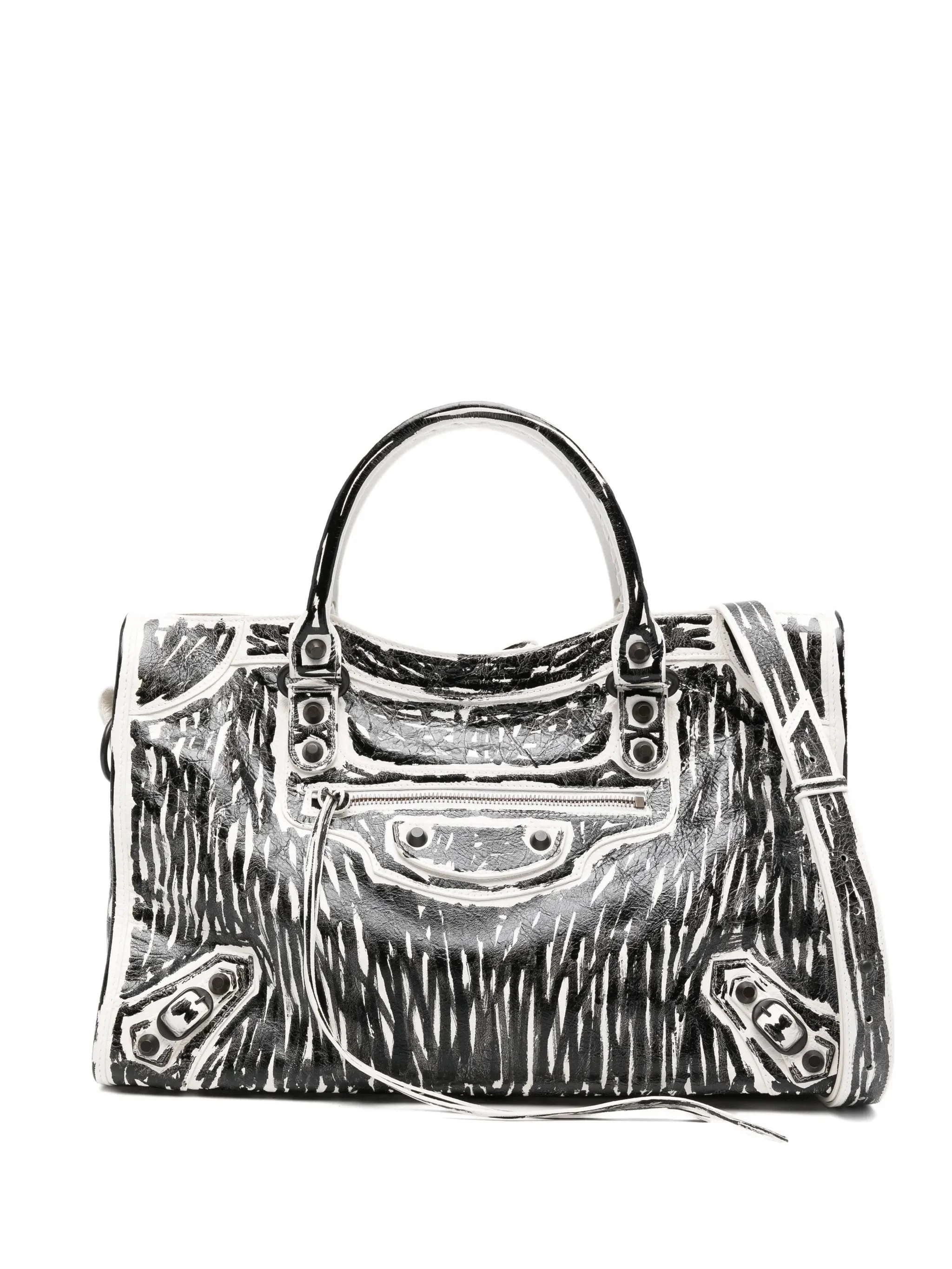 white and black graphic print top handle front zip pocket silver-tone hardware This piece comes complete with a protective dust bag. - Color: BLACK/WHITE - Made in: Italy - Designer Style ID: 823058 2AB9W 9110 Composition and care Outer Composition Calf Leather: 100.0%