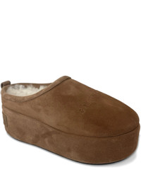 brown platform sole embossed logo backless design - Color: BROWN - Made in: Italy - Designer Style ID: 825258 WBFC1 2200 Composition and care Outer Composition Calfskin: 100.0%, Lining Composition Acrylic: 100.0%, Lining Composition Polyester: 100.0%, Lining Composition Wool: 100.0%, Sole Composition Recycled Tpu: 100.0%