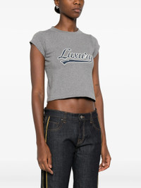 Women's Luxury Script Shrunk T-shirt in Dark Heather Grey/blue