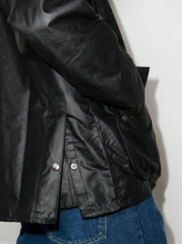 This black Barbour Bedale wax jacket is crafted from a waxed cotton fabric to a relaxed fit. It features a press button and two-way zip fastening, optional corduroy collar that closes to a funnel neck, two side slip pockets, two buttoned flap patch front pockets and press-stud side slits. If we had the time we’d wax ly - chest: 124.0 centimetres, length: 74.0 centimetres, shoulder width: 60.0 centimetres, sleeve length: 54.0 centimetres, waist: 124.0 centimetres - Color: BLACK - Made in: United Kingdom - Designer Style ID: MWX0018 BK91 Composition and care Outer Composition Cotton: 100.0%, Lining Composition Cotton: 100.0%
